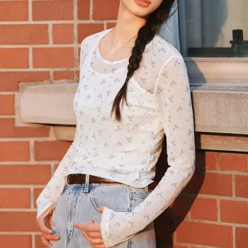 Women's Sheer Tulle Long Sleeve Slim Fit Top – Chic Layered Look for Spring